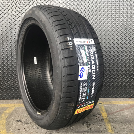 ยางใหม่ 225-45-17 Pirelli Dragon Sport ปี17 โปร ซื้อ 2 แถม 2 ชุดละ 14000 บาทเท่านั้น