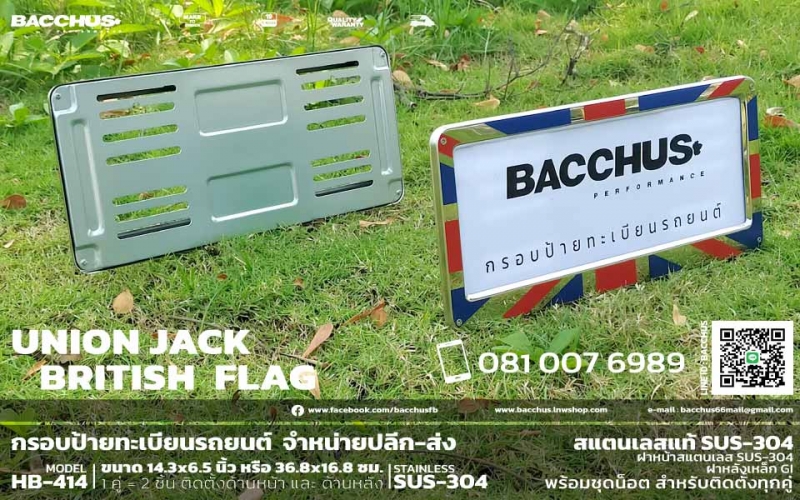 กรอบป้ายทะเบียนรถยนต์ สแตนเลสแท้ SUS-304 ลายธงชาติอังกฤษ UNION JACK