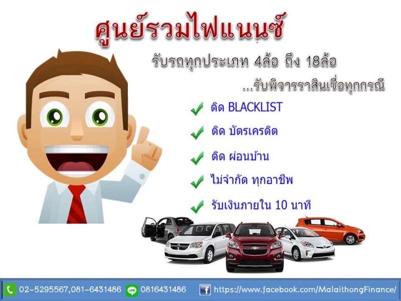 สินเชื่อรถยนต์ รับจัดไฟแนนซ์ รีไฟแนนซ์ ย้ายไฟแนนซ์ ไถ่ถอนรถถูกยึด จำนำเล่มทะเบียน รถ4ล้อ - 18 ล้อ รถเก๋ง กระบะ รถตู้ แท็กซี่ รถไถ รถโดยสาร รถ6ล้อ รถ10ล้อ รถพ่วง รถหัวลาก-หางพ่วง รถบัส