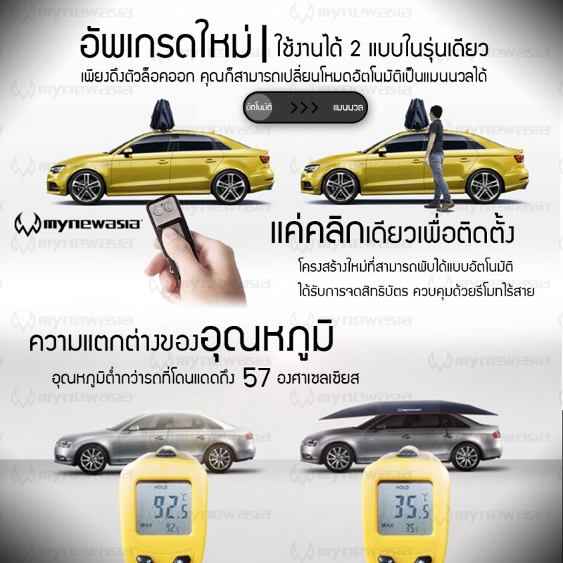 ร่มรถ ร่มกันแดดรถยนต์อัตโนมัติแบบพกพามายนิวเอเชีย MynewAsia รุ่นใหม่ล่าสุด Gen 2 Version 2018
