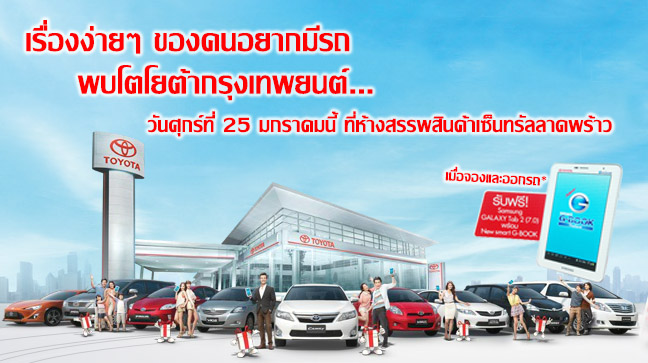 เรื่องง่ายๆ ของคนอยากมีรถ แถมได้ Samsung Galaxy Tab 2 (7.0) พร้อม New Smart G-Book นาน 1 ปี เพียงจองและออกรถกับโตโยต้ากรุงเทพยนต์ (เฉพาะรุ่นที่กำหนด) แล้วพบกันที่งาน Altis Day วันศุกร์ที่ 25 มกราคมนี้ ที่ห้างสรรพสินค้าเซ็นทรัลลาดพร้าว บริเวณชั้น 1 หรือสอบถามข้อมูลเพิ่มเติมได้ที่ 02-319-9876 ต่อ 4101
