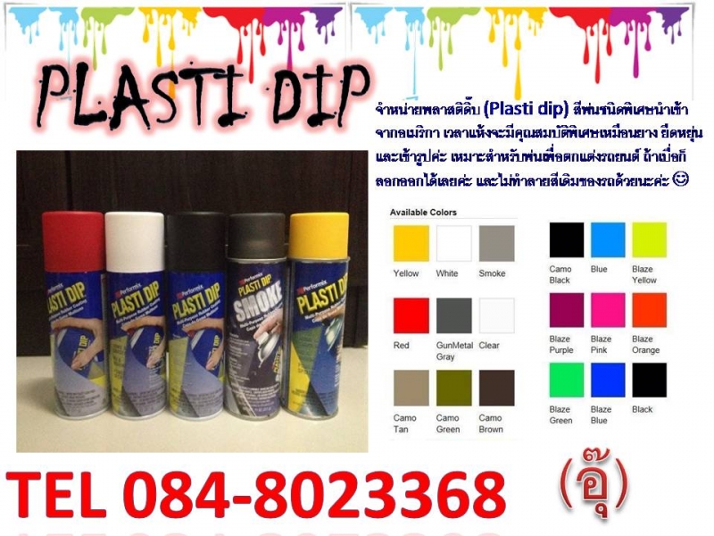 ขายสเปรย์ Plasti Dip สีพ่นพิเศษนำเข้าจากอเมริกา มีส่วนผสมของ ยาง (Rubber) เวลาแห้งตัวจะมีคุณสมบัติเหมือนยางยืดหยุ่น เข้ารูป เบื่อๆ ก็ดึงลอกออกได้เลยค่ะ ไม่ทำลายสีเดิมของรถด้วยนะค่่ะ พ่นได้ทั้งสีล้อแม็ก รถยนต์ รถมอเตอร์ไซ โลโก้ กระจังหน้ารถ หรืออื่นตามที่ต้องการเลยจ้า สามารถทำได้ด้วยตัวเอง (DIY) ไม่ต้องเสียตังไปจ้างร้านทำด้วยนะจ๊ะ