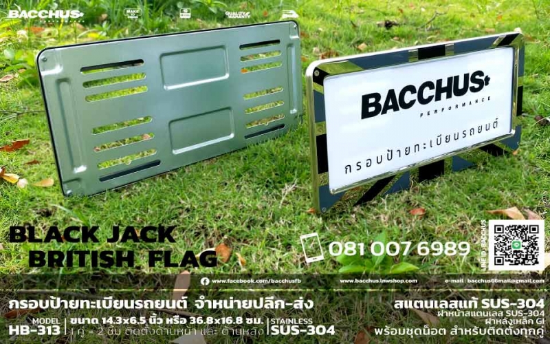 กรอบป้ายทะเบียนรถยนต์ สแตนเลสแท้ SUS-304 ลายธงชาติอังกฤษ สีดำ BLACK JACK
